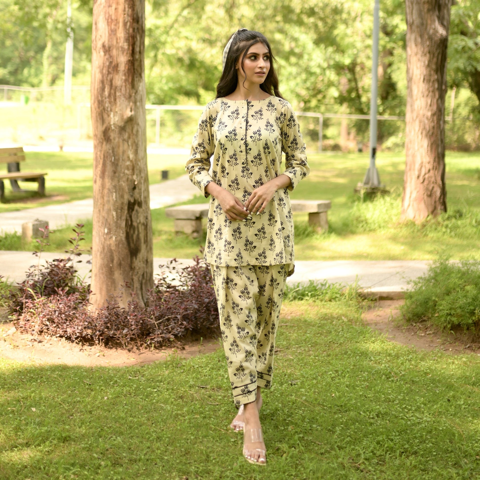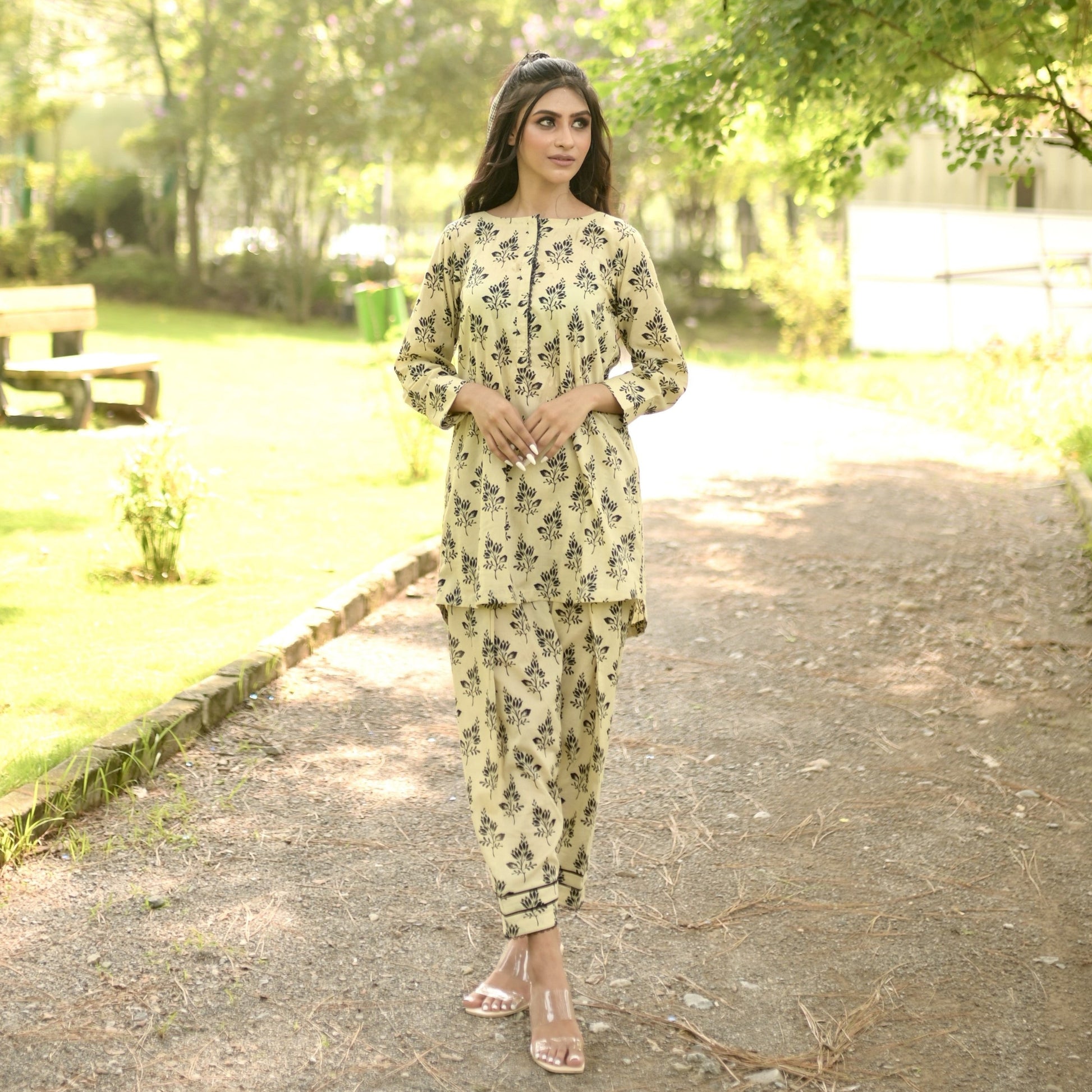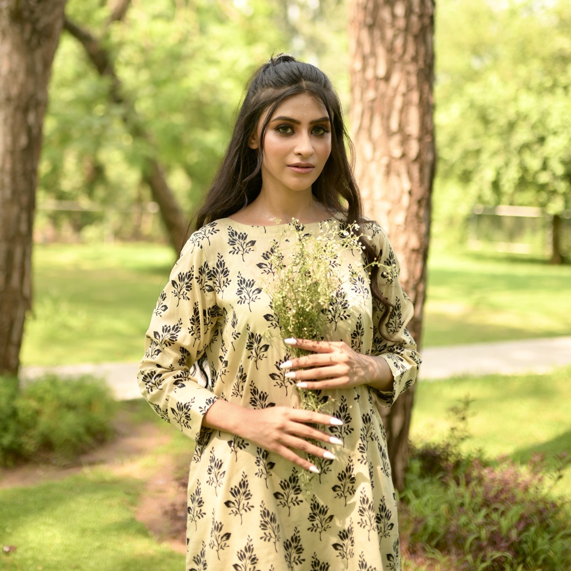 The attire is luxuriously crafted piece of premium lawn fabric, showcases exquisite print that unfolds in a harmonious symphony. This opulent short shirt represents a fusion of traditional craftsmanship and contemporary aesthetics, making it a captivating and timeless creation with straight fit shalwar with lace detailings.