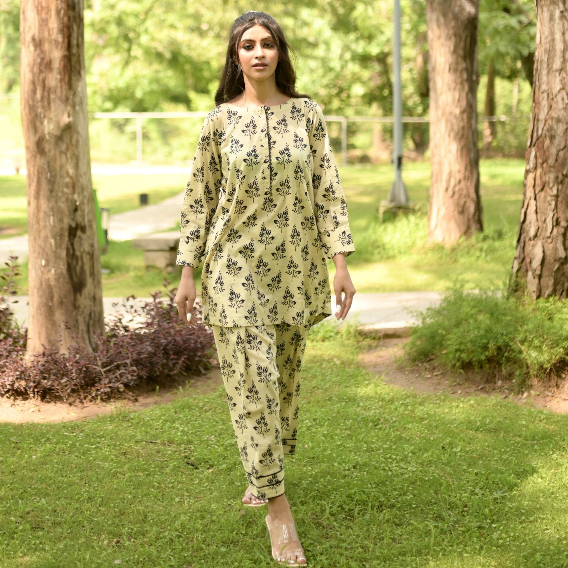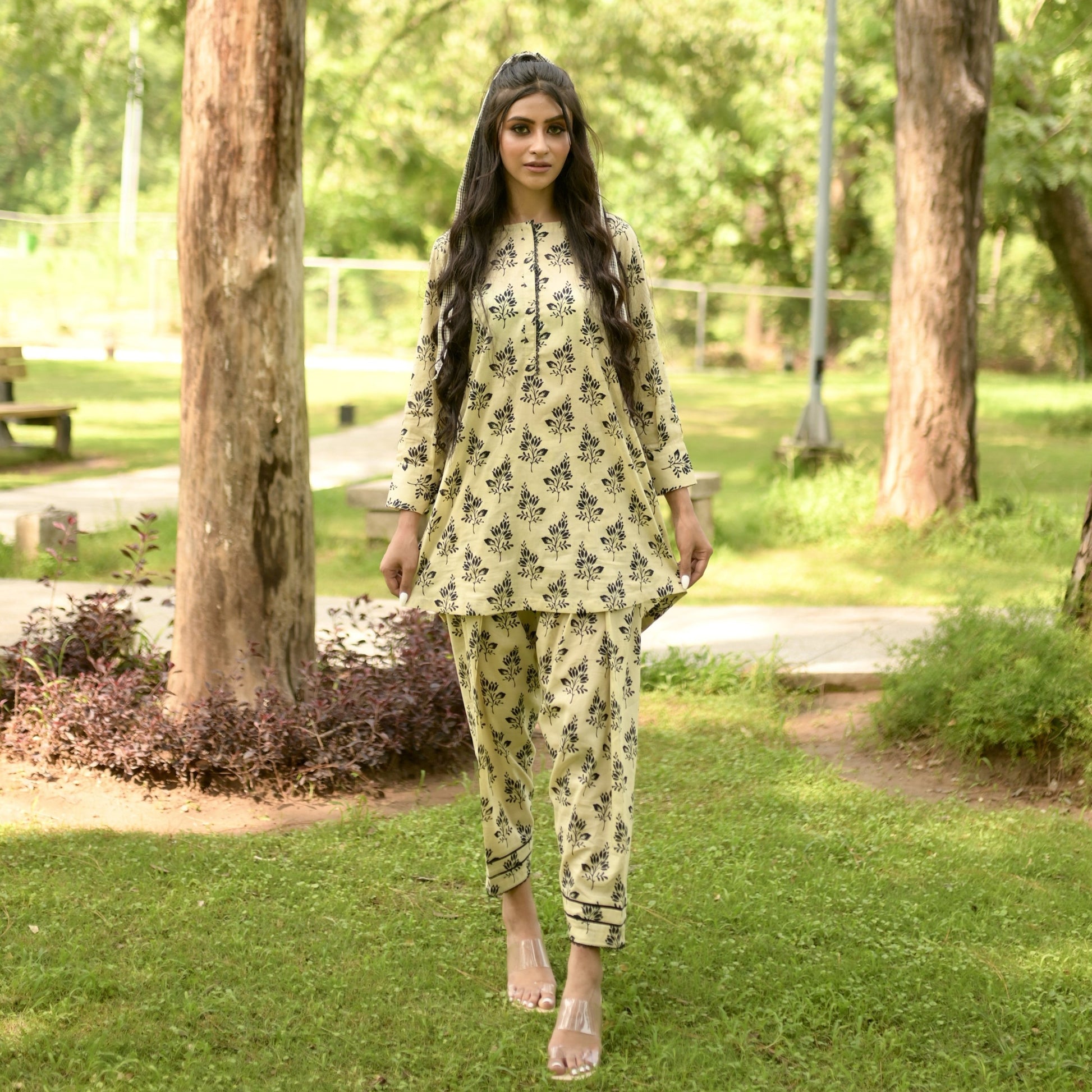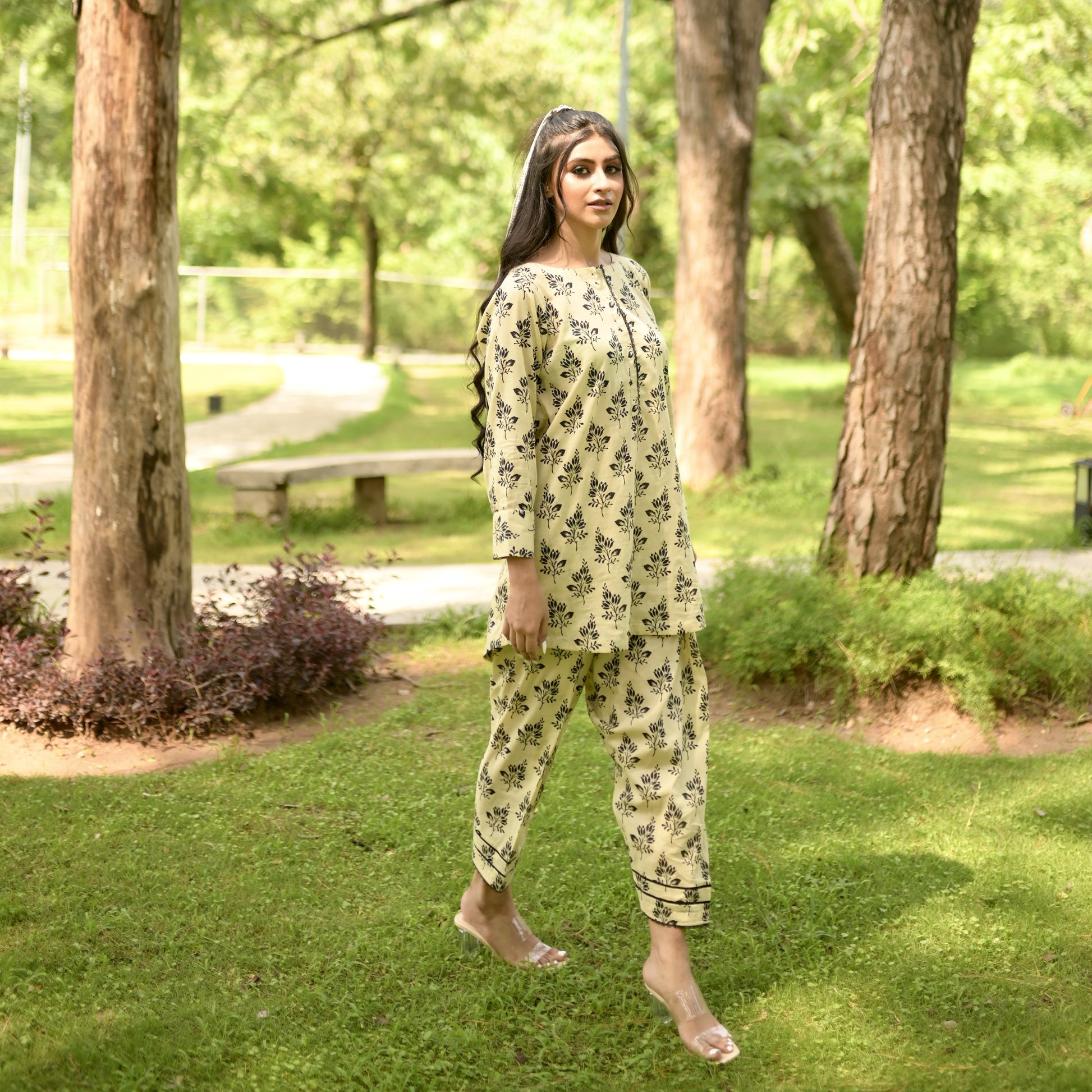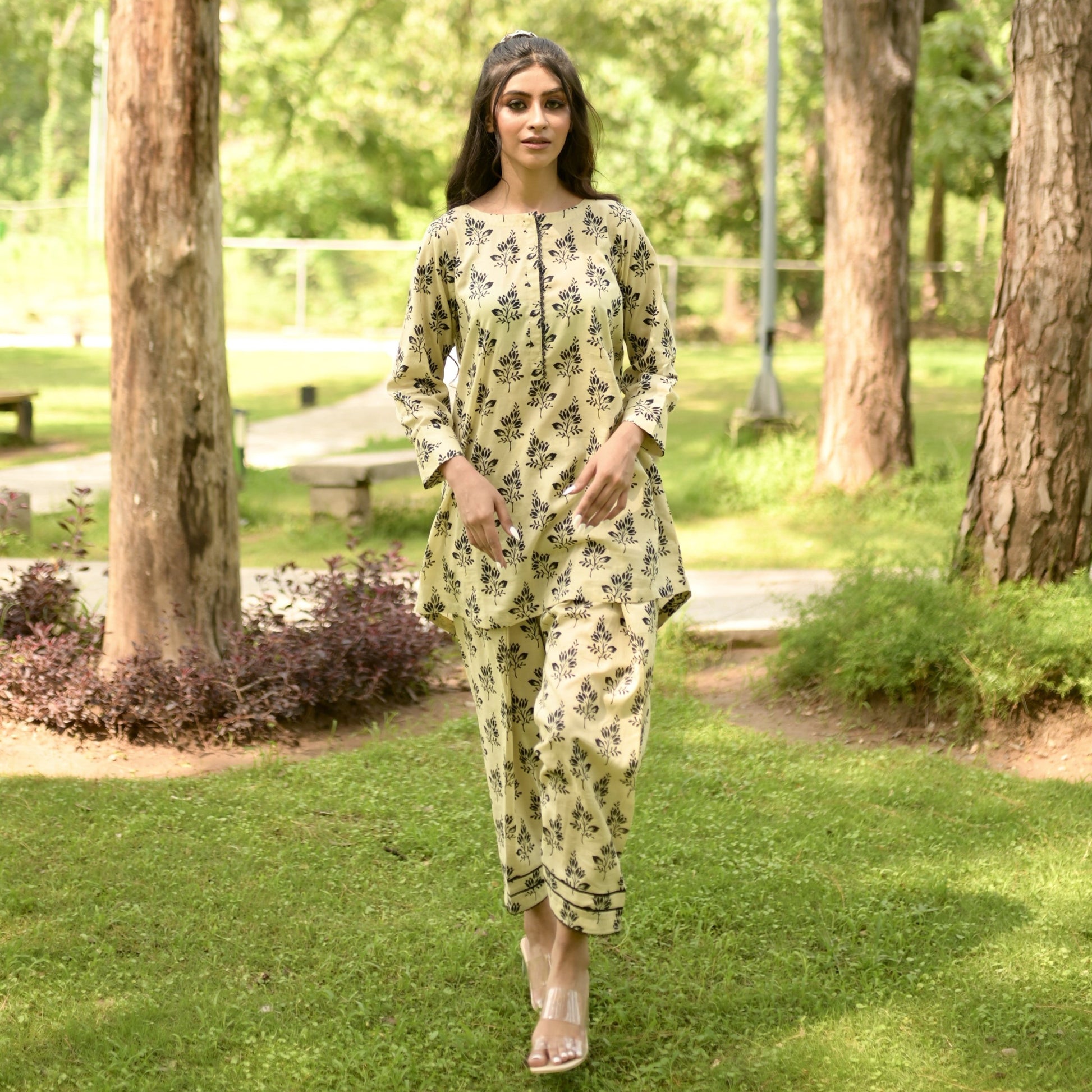 The attire is luxuriously crafted piece of premium lawn fabric, showcases exquisite print that unfolds in a harmonious symphony. This opulent short shirt represents a fusion of traditional craftsmanship and contemporary aesthetics, making it a captivating and timeless creation with straight fit shalwar with lace detailings.